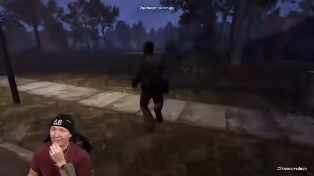 01:05:13Die Kamera des Streamers ist kaputt, was zu Verwirrung führt. Nachdem ein Spielcharakter wegen der zerstörten Kamera angreift, versucht das Team, ihn mit Steinen abzuwehren. Dabei stellen sie fest, dass sie zwei Smartphones besitzen und diskutieren über die Spielmechaniken, während sie erfolglos versuchen, gezielt mit Steinen zu werfen. Es zeigt sich, dass sie das Spiel noch nicht vollständig verstehen, insbesondere in Bezug auf die Positionierung zur Leiche und den Tresor.