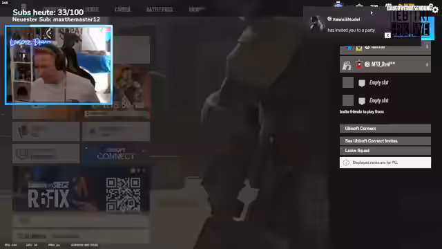 02:13:05Nachdem ein technischer Bug mit dem In-Game-Sound im Assassin's Creed-Spiel behoben wurde, wechselt der Streamer zu Rainbow Six Siege. Es wird Ranked gespielt. Der Streamer ruft den Chat auf, ihm Freundschaftsanfragen und Spiel invitations zu schicken, um im Squad zu spielen. Es werden Teammitter wie DestroyBug, 1 Melone, Tanjiro und Johannes erwähnt. Der Streamer berichtet von seinen aktuellen Zahnschmerzen, die von einem Weisheitszahn stammen, und plant einen Zahnarzttermin vor seiner Japan-Reise.