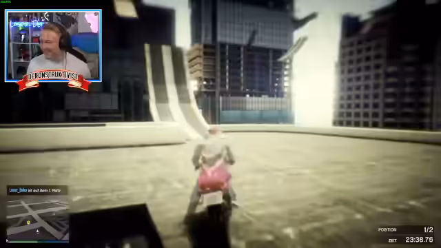 05:44:59Eine neue Runde im Multiplayermodus von GTA beginnt, mit Fokus auf Geistermodus und verschiedene Stunt-Herausforderungen. Es kommt zu zahlreichen Interaktionen und Spannungen zwischen den Spielern. Streamer wird wiederholt von anderen Spielern blockiert oder behindert, was ihn frustriert und zu Provokationen verleitet. Gleichzeitig werden spielerische Erfolge gefeiert und Missgeschicte kommentiert. Die Stimmung ist geprägt von Wettkampf, Trollerei und gemeinsamen Versuchen, die Kurse zu meistern.