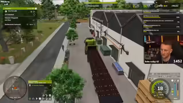 02:23:38Der Streamer fängt an, die produzierten Produkte zu verkaufen und Aufträge abzuwickeln. Es werden Produkte wie Isolierung, Klopapier und Papierrollen an den Baumarkt geliefert. Gleichzeitig werden andere Produkte wie Abfallholz und Holzpaletten verkauft. Der Streamer überprüft ständig die Auftragslage und versucht, die Gewinne zu maximieren. Es werden auch Probleme mit der Verkaufslogistik angesprochen, wie zum Beispiel, dass Produkte nicht korrekt abgeholt werden.