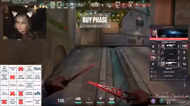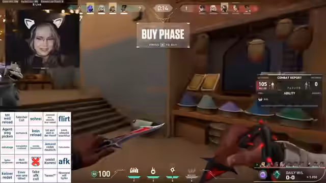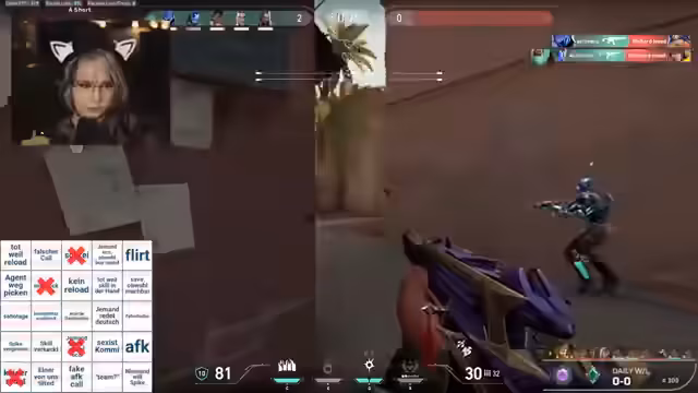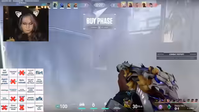 00:30:31Der Stream wird durch technische Unterbrechungen und unvorhergesehene Ereignisse wie plötzlich rote Ping-Anzeigen unterbrochen. Streamer geht kurz und kehrt mit einer sauberen Brille zurück. Anschließend beginnt das eigentliche Spiel mit dem ersten Bingo-Ereignis: 'Weint zum Start'. Im weiteren Verlauf werden verschiedene Agenten wie Sentinel, Breach und Phoenix erwähnt und ihr Potenzial im aktuellen Spiel analysiert.