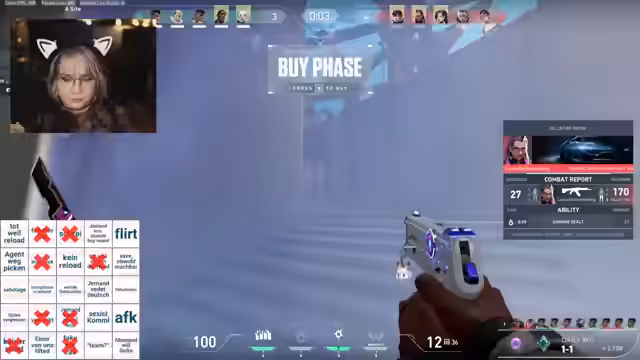 02:36:59Nach einer gespielten Runde reflektiert die Streamerin über ihre Leistung und die des Gegnerteams. Sie analysiert bestimmte Spielzüge und äußert sich über die Effektivität der Odin-Waffe gegen bestimmte Gegner. Auch die Kommunikation mit den Gegnern im All-Chat wird thematisiert, wobei sie sich über eine spezielle Nachricht wundern. Sie plant für die nächste Runde verschiedene Strategien, darunter das Spielen von Maps und die Nutzung von ultimativen Fähigkeiten um bestimmte Bereiche des Spielfelds zu kontrollieren.