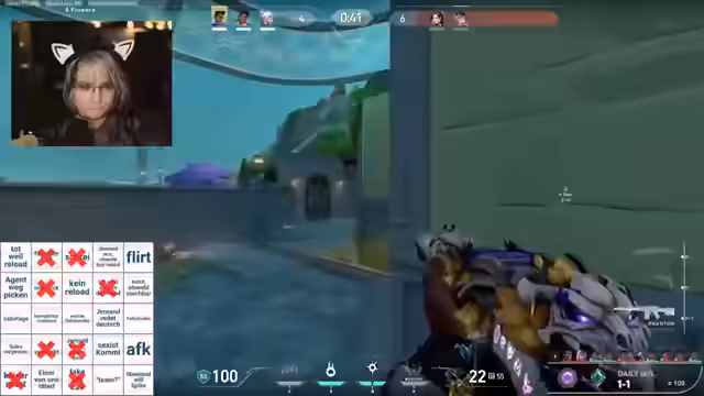 00:39:52Während des Spiels teilt Streamer detaillierte Einblicke in Spielstrategien. Es wird über den Einsatz verschiedlicher Agenten wie Deadlock und Sky diskutiert, ihre speziellen Fähigkeiten und wie diese im Team effektiv eingesetzt werden können. Auch übermap spezifische Taktiken wie den Einsatz von Phoenix Walls, Flashes und anderen Fähigkeiten wird gesprochen. Der Fokus liegt dabei auf der Verbesserung der Teamkommunikation und der Positionierung im Spiel.