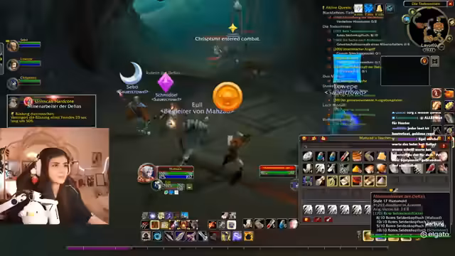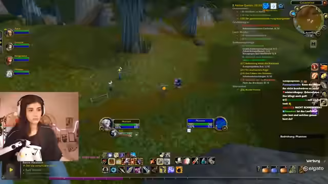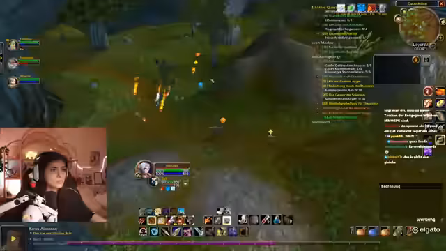 08:16:41Die Aufzeichnung setzt die Erkundung von Westfall fort, wobei die Streamerin den Fokus auf die Abenteuer mit ihrer Gruppe legt. Sie äußert ihre Frustration über die Wiederholungen und das Respawn-Verhalten der Gegner, insbesondere bei der Quest 'Bedrohung durch die Blackrock'. Die Zusammenarbeit mit anderen Spielern ist zentral, wobei sie über die Notwendigkeit von Schilden und Unterstützung spricht, um den gefährlichen Gegnern standhalten zu können. Die Jagd auf spezifische Quest-Items, wie die Schattenfall-Anhänger, gestaltet sich schwierig, da die Gegner ständig respawnen und die Gegend überlaufen scheint.