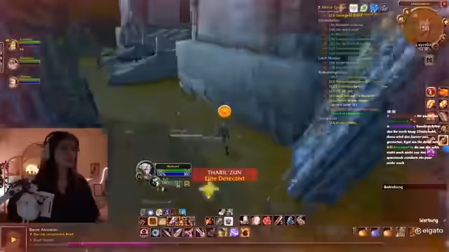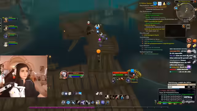 09:39:06Die Gruppe beschließt, einen patrouillierenden Elite-Gegner anzugreifen, was zu einem intensiven Kampf führt. Die Streamerin steuert die Gruppe strategisch, nutzt ihre Eule als Tank und verteilt Rüstungstränke. Es kommt zu einem kritischen Moment, als die Streamerin aus Versehen ein wichtiges Quest-Item wegwirft, was sie in Panik versetzt. Trotz dieses Missgeschicks und einer unvorhergesehenen Patrouille gelingt es der Gruppe, den Elite-Gegner zu besiegen und wertvolle Beute zu sichern.
