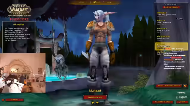 08:12:02Der Streamer befindet sich nun in Sturmwind und nutzt die Zeit, um die Stadt zu erkunden. Er interagiert mit anderen Spielern, die auf den Buff warten, und tanzt mit ihnen auf der Straße. Es kommt zu einer Verwechslung bei den Namen des Events und des Spielers 'Zalanda'. Er plant, den Buff zu nehmen und anschließend in die Magierviertel zu gehen, um sich über Magier-Outfits zu informieren. Die Stimmung ist gelassen und gesellig, während alle auf den Event warten.