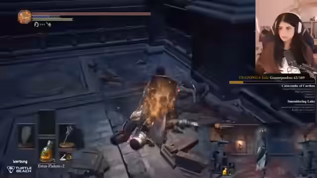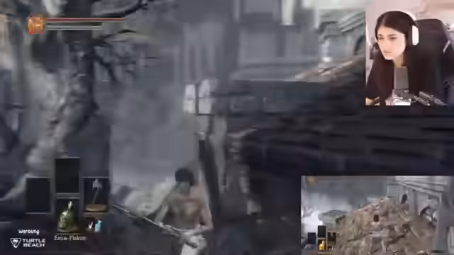 00:10:44Der Stream beginnt mit der Musik, die als Wundertüte bezeichnet wird. Die Streamerin begrüßt ihr Publikum an diesem bewölkten Sonntag und erwähnt, dass sie sehr hell im Gesicht erscheint, obwohl es nicht an einer Raucherpause liegt. Sie liest verschiedene Namen aus dem Chat vor, die Bits und Spenden gesendet haben, und erwähnt, dass sie wenig geschlafen hat und ein langer Stream geplant ist. Danach geht es direkt ins Dark Souls 3 Gameplay.