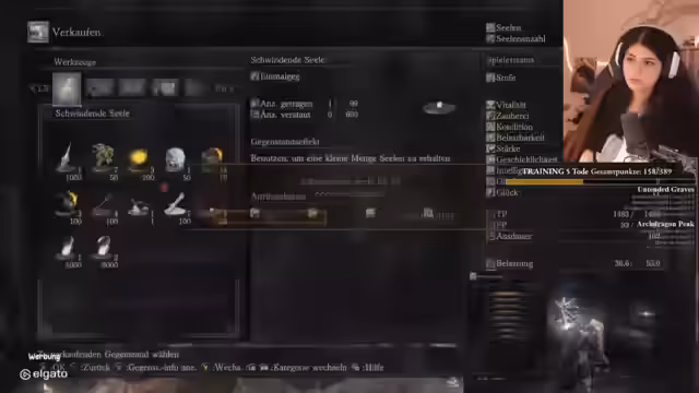 04:50:47Der Stream konzentriert sich auf Dark Souls III mit Fokus auf strategische Kämpfe gegen verschiedene Gegner. Der Spieler wird durch Leveln und Verbesserung von Ausrüstung gestärkt, wobei häufig das Nutzen von Hidden Body zum Durchrennen empfohlen wird. Besondere Aufmerksamkeit gilt den Bosskämpfen, deren Verhalten und Techniken im Detail analysiert werden, um optimale Strategien zu entwickeln.