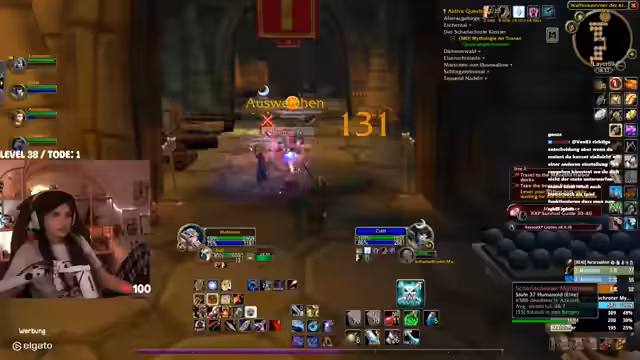 07:50:37Im Kontext des World of Warcraft Streams werden verschiedene Strategien und Probleme im Spiel besprochen. Es wird über eine gefährliche Situation im Verlies gesprochen, die zu einem Final Destination Moment führte. Um effizienter zu sein, wird der sogenannte Ghetto-Ruhestein erklärt, eine Methode, um den Ruhestein-Kühlzeit zu umgehen und sich schneller zu portieren. Eine solche clevere Vorgehensweise wird als echter Gamer-Spielstil gelobt.
