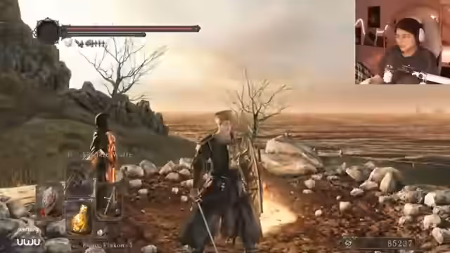 04:15:10Nach dem Sieg über die Verlorene Sünderin wird der nächste Schritt besprochen: das Aufleveln des Charakters. Es wird festgelegt, welche Attribute verbessert werden sollen, wobei zunächst Wille und dann Vitalität und Anpassung im Fokus stehen. Es wird die Route zum nächsten Ziel geplant, wobei auf die Gefahren und Gegner hingewiesen wird, die auf dem Weg lauern. Während der Routenplanung kommt es zu einer unerwarteten Invasion durch einen zufälligen Spieler, was die Situation erheblich erschwert. Der Invader kann in bestimmten Gebieten jederzeit auftauchen, was als sehr frustrierend empfunden wird. Es wird empfohlen, den Invader in einem bestimmten Bereich zu bekämpfen und den explodierenden Gegner loszuwerden. Nach dem erfolgreichen Abwehren der Invasion wird die Route fortgesetzt, wobei die Gefahr weiterer Invader betont wird. Trotz der unerwarteten Schwierigkeiten wird das Ziel, die sieben Bosse an diesem Tag zu schaffen, weiterhin verfolgt.