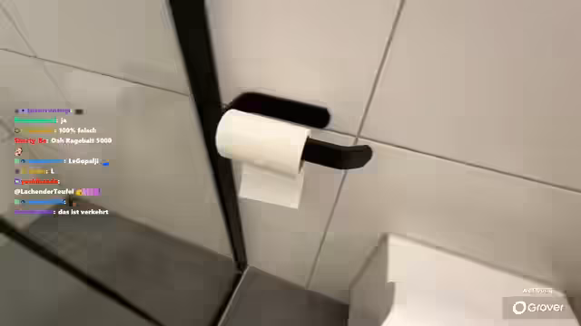 00:10:09Der Stream wird mit einer herzlichen Begrüßung gestartet. Die Streamerin bereitet eine Kamera im Bad vor, um die Zuschauer beim Schneiden des Streams zu begleiten. Es gibt humorvolle Kommentare über die Kamera im Bad und das Thema Toilettenpapier, das viel Diskussionen im Chat auslöst. Dabei wird erwähnt, dass es eine kleine 'Fehde' um die richtige Richtung des Toilettenpapiers gibt.