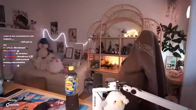 00:54:28Die Streamerin erklärt ihren schnellen Make-Up-Stil und zeigt diverse Produkte, die sie verwendet. Es geht um ihre Teilnahme an den Stream Awards und die Vorbereitung darauf. Dabei erwähnt sie negative Erfahrungen mit der Deutschen Bahn auf der letzten Reise dorthin. Auch werden Japanische Make-Up-Marken wie Olens vorgestellt, von denen viele Produkte stammen.
