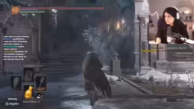 00:42:11Der Streamer kämpft erfolgreich gegen die Silberritter und macht sich auf den Weg zu den Nilpferden. Er beschreibt die Schwierigkeiten dieser Gegner und die Notwendigkeit, sie einzeln zu pullen, was kompliziert ist. Er kauft einen Köderschädel und plant, die Ratten des Riesen Yorm zu nutzen, um mehr Schaden zu verursachen. Die Passage zur gottlosen Hauptstadt ist knackig, aber machbar mit dem Hidden Body-Item.