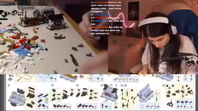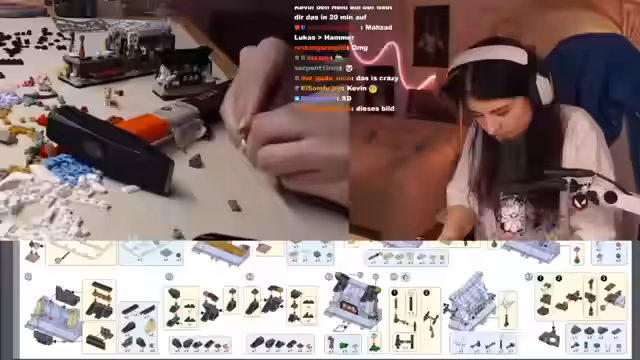01:54:17Es wird festgestellt, dass der Bau des Klemmbaustein-Sets eine Fleißarbeit ist. Es gibt Schwierigkeiten mit Stickern, die als grauenhaft empfunden werden, im Gegensatz zu Prints, die von einigen bevorzugt werden. Es wird erwähnt, dass Blue Bricks gute Sets ohne Sticker anbietet. Trotz anfänglicher Schwierigkeiten scheint der Bauprozess in Fahrt zu kommen, wird jedoch immer wieder durch friemelige Angelegenheiten und Baufehler unterbrochen. Es kommt zu einem Punkt, an dem ein Zwischenschritt vergessen wird und Teile kaputt gemacht werden. Die Streamerin vergleicht die Situation mit dem Bau eines PCs im Stream, was als Fiebertraum empfunden wurde. Die Webcam wird kurz thematisiert, wobei das Modell als Logitech C922 identifiziert wird. Es wird erwähnt, dass das Bauen mit Gelnägeln schwierig ist, weshalb diese vorher gekürzt wurden. Der Chat gibt Tipps und hilft bei der Suche nach einer digitalen Bauanleitung, nachdem die Papieranleitung Verwirrung stiftet. Ein Zuschauer findet eine chinesische Website mit der Anleitung, die jedoch den Stream zum Absturz bringt. Die Streamerin zeigt daraufhin den aktuellen Schritt in der Papieranleitung. Es wird ein Link zu einer PDF-Anleitung geteilt, und die Streamerin wechselt zur digitalen Anleitung in Full HD.