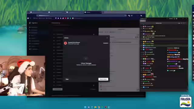 01:53:33Es werden drei Gutscheine im Wert von je 25 Euro für den Frosta-Online-Shop verlost. Die Teilnahme erfolgt ausschließlich über den Twitch-Chatbot: Interessenten senden ihre E-Mail-Adresse als Flüsternachricht. Die Gewinner werden anschließend per E-Mail informiert, wobei die Übermittlung eventuell bis zum nächsten Tag dauern kann. Die Gutscheine sind speziell für den Online-Shop gedacht, obwohl Frosta-Produkte auch im stationären Handel erhältlich sind. Dieses Giveaway wird als kleines Weihnachtsgeschenk bezeichnet und soll die Partnerschaft mit Frosta abrunden.