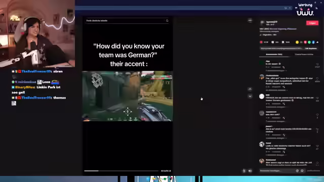 00:33:15Die Streamerin spricht über die Valorant-Community, die sie als "fragwürdig" bezeichnet, aber lobt gleichzeitig die Kreativität der Valorant-Editoren und -Creator. Sie beschreibt die Community als "Fiebertraum" aufgrund verschiedener Verhaltensweisen der Spieler. Es wird ein Valorant-Edit auf TikTok gezeigt, bei dem der Ton nicht synchron ist, was zu technischen Problemen führt. Anschließend wird überlegt, TikToks von Zuschauern im Stream anzusehen, wobei die Streamerin ihre "Premium-TikTok-Likes" zeigen möchte. Es folgt eine Diskussion über den Umgang mit Kritik und negativen Kommentaren im Chat, wobei die Streamerin betont, dankbar für ihr Leben und die Unterstützung ihrer Zuschauer zu sein.