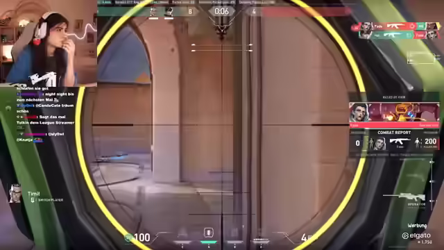 03:37:58Nach dem Bloodborne-Durchgang wechselt die Streamerin zu Valorant und spielt mit Timmit zusammen. Dabei gibt es Diskussionen über den aktuellen Rang und die Anzahl der benötigten Siege, um aufzusteigen. Sie erzählt von ihrem Tag und den Erlebnissen mit einer neuen Schiene für ihre Zahnspange. Während des Valorant-Spiels treten technische Probleme auf, wie Packet Loss und fehlender Voice-Chat, was zu Verwirrung und Frustration führt. Die Streamerin vermutet, dass der Packet Loss mit dem Erscheinen von Gegnern zusammenhängt und bittet Lukas, das Netzwerk zu verlassen, um das Problem zu beheben. Trotz der technischen Schwierigkeiten und des fehlenden Erfolgs in den Spielen behält sie ihren Humor und interagiert weiterhin aktiv mit dem Chat. Es wird überlegt, ob ein Bug im Spiel vorliegt, der dazu führt, dass Gegner nicht auf dem Bildschirm angezeigt werden. Sie spricht über ihre Vorliebe für geriffelte Chilli-Paprika-Chips mit Joghurt und erzählt eine Anekdote über einen versehentlich gekauften Sahne-Kirsch-Torte, die sie trotz Laktoseintoleranz gegessen hat.
