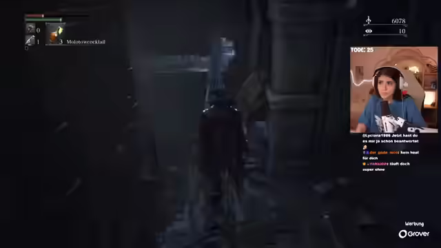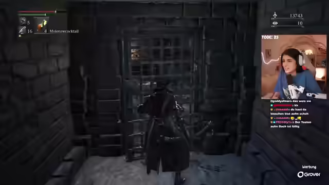 01:52:24In Bloodborne sieht sich mit diversen Herausforderungen konfrontiert. Zunächst begegnet sie einem Dogo, dem sie lieber aus dem Weg gehen würde. Trotzdem gerät sie in brenzlige Situationen, in denen sie von Gegnern entdeckt wird und sogar fast stirbt, wobei sie die Unterstützung ihrer Zuschauer Nadjan, Flumli, Poohmeister, Unlucky Koi und Mani dankend annimmt. Sie findet einen Shortcut, der ihr ermöglicht, zu heilen und einzukaufen, wobei sie Feuerpapier erwirbt und überlegt, wie sie ihre Waffen verbessern und ihr Level steigern kann. Dabei spricht sie auch über die Möglichkeit, das skumische Medaillon freizuschalten. Sie betont, dass ihre Aufregung Teil des Spiels ist, genießt es aber trotzdem und plant, Bloodborne komplett durchzuspielen und alles zu erkunden. Die PS5 hat sie sich über Grover gemietet. Sie erwähnt die Möglichkeit, die Konsole später abzukaufen und überlegt, ob sie Demon's Souls spielen soll.
