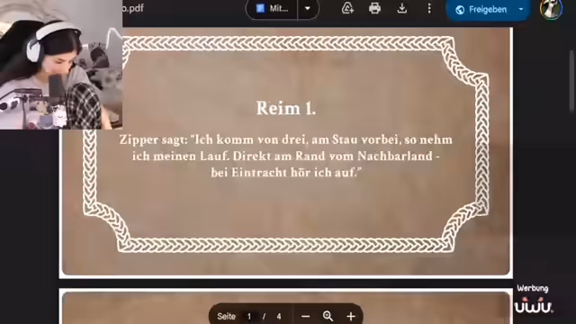 01:57:41Auf Basis des letzten Reims, der Lichtenrade und die Spree erwähnt, wird der Mellow Park in Berlin-Lichtenrade als finale Lösung identifiziert. Der Hinweis 'es rollt direkt am Fluss' bezieht sich auf den Skatepark, wo Skateboards und Roller rollen. Es stellt sich heraus, dass hier der letzte 'Drache' für eine große Aktion versteckt ist, die im Rahmen des 'Drachenjagd.gg'-Events stattfindet.