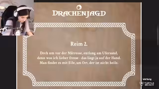 00:55:10Das Hauptereignis des Streams ist die Teilnahme an der offiziellen Drachenjagd-Aktion zum Film "Drachenzähmen leicht gemacht: Die verborgene Welt". Streamer hat über zwölf Tage hinweg mit Lukas an der Aktion teilgenommen. Sie lösen nun das finale Rätsel, um den Standort des letzten Drachen und damit des Hauptgewinns zu finden. Der Hauptgewinn besteht aus Tickets für das Elbenwald-Festival. Beide preisen die Marketing-Aktion als gelungen und teilen Details mit der Community.
