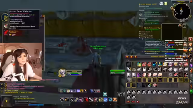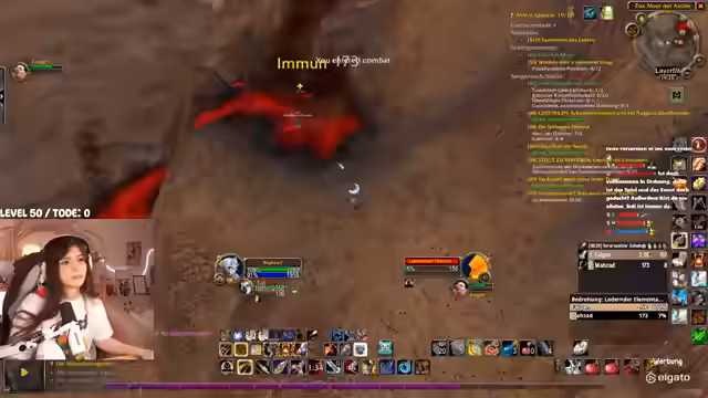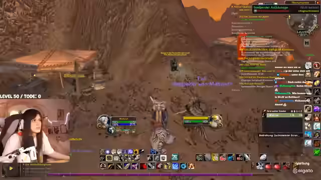 06:54:46Die Streamer sind wieder in World of Warcraft und erkunden die Molten Core Instanz. Sie koordinieren das Farmen von Items und Quests, wie z.B. das Teilen von World Buffs. Maluna, der Krieger, hat Probleme mit der Waffen-Levelung, während Grubby als gute Drops gilt. Die Gruppe kämpft gegen Insektenmobs in einer Höhle und kündigt an, den Hauptschwarm anzugreifen.