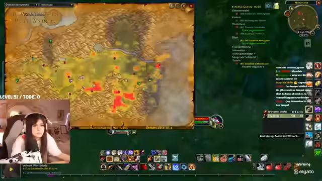 05:13:45Die Streamerin äußert Zweifel an ihrer Teilnahme an den täglichen Gruppenquests in Maraudon. Sie fühlt sich physisch nicht für die anstrengenden Runs bereit und befürchtet, durch Konzentrationsprobleme die Gruppe zu gefährden. Der Chat rät ihr, die tägliche Praxis für den späteren Raid zu nutzen, doch sie möchte vorerst selbstständig questen, um sich auf die Anforderungen vorzubereiten und keine Mitschuld an eventuellen Gruppentoden zu haben.