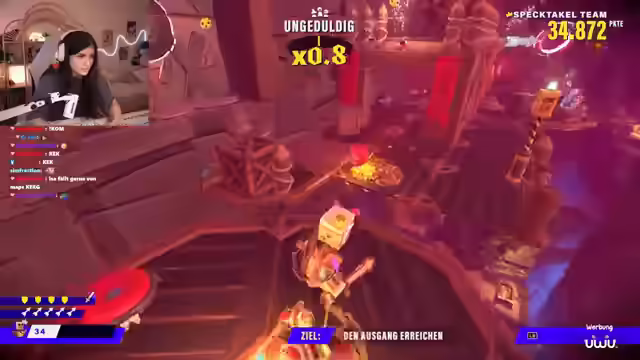 01:25:56Es wird ein Jump'n'Run Dungeon ausgewählt und begonnen. Es wird über die Schwierigkeit des Jump'n'Runs gesprochen und sich gegenseitig angefeuert. Es werden Schalter umgelegt und Abkürzungen gefunden. Es wird ein optionaler Bereich mit einer Truhe entdeckt. Es wird festgestellt, dass man nicht alle Bereiche abschließen muss, um weiterzukommen. Es wird ein weiteres Rätsel gelöst, bei dem man Figuren an die richtige Position bringen muss. Es wird festgestellt, dass man mehr Kisten kaputt machen und Kronen sammeln muss, um eine höhere Punktzahl zu erreichen. Es wird beschlossen, mehr zu kämpfen und weniger Jump'n'Run zu spielen. Es wird kurz eine Toilettenpause eingelegt. Es wird auf den KOM-Link im Chat hingewiesen. Es wird über die Jahreszeiten diskutiert und festgestellt, dass Herbst nicht so beliebt ist, da es nass und eklig ist. Es wird Herbst-Mode gelobt. Es wird Frühling als die beste Jahreszeit genannt.