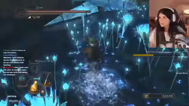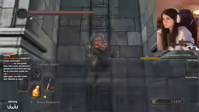 03:43:12Das Spielgeschehen verlagert sich in das Gebiet mit dem Spiegelritter, einem anspruchsvollen Boss. Der Kampf ist geprägt von hohem Druck, schnellen Angriffen und der Notwendigkeit, mehrere Gegner gleichzeitig zu bewältigen. Trotz intensiver Bemühungen gelingt es nicht, den Boss zu besiegen, was die Frustration der Streamerin erhöht und den Teil des Streams als besonders fordernd kennzeichnet.