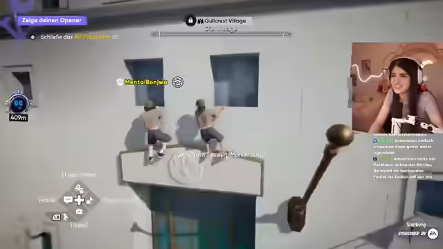 03:44:10Es wird hervorgehoben, dass das beste Feature das Bauen und Klettern ist, besonders in Kombination mit dem Skaten. Das optionale Skaten wurde nachträglich ins Spiel integriert. Während des Spielens wird ein Gebäude erklommen, wobei die Interaktion mit Objekten diskutiert wird. Es wird überlegt, ob platzierte Objekte nur für die Erbauer sichtbar sind oder für alle. Bänke werden als nützliche Kletterhilfen identifiziert. Ein Spieler ist begeistert von den Aktionen im Spiel. Es wird der Hinweis gegeben, dass das Spiel im Early Access auf verschiedenen Plattformen verfügbar ist und sich besonders für Kletter- und Skate-Begeisterte eignet. Abschließend wird ein gemeinsamer Sprung vom Gebäude ins Spiel geplant und durchgeführt.