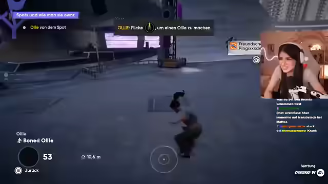 01:27:46Es wird erklärt, wie man einen Controller am PC anschließt, um Skate zu spielen. Das Spiel ist plattformübergreifend verfügbar, einschließlich PS5, Xbox und PS4. Es folgt ein kurzer Austausch über den veganen Lebensstil. Die Person versucht seit etwa zweieinhalb Wochen vegan zu leben. Es wird ein Olli-Kurs erwähnt, den die Person bereits gestartet hat und bereit ist, ihn erneut zu machen. Es wird über Grinds und Slides gesprochen, bei denen man mit den Achsen oder dem Board über Rails und Kanten rutscht. Das Ziel ist es, den Kickflip zu meistern, und es wird über das Wassertaxi gesprochen, das zum nächsten Ort bringt. Abschließend wird erwähnt, dass das Ganze von EA gesponsert wird.