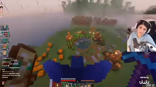 02:49:11Auf der Suche nach Quarz für ihr Bauprojekt begibt sich die Streamer ins Nether. Dabei wird sie Zeugin eines Donners, was als seltenes und besonderes Ereignis gilt. Nachdem sie die benötigten Ressourcen gesammelt hat, kehrt sie in die Oberwelt zurück, um den Bau ihrer Pokémon-Heilstation fortzusetzen. Sie muss jedoch feststellen, dass die Anordnung der Blöcke und das Design des Kreuzes auf dem Dach noch nicht optimal sind und weiter überarbeitet werden muss.