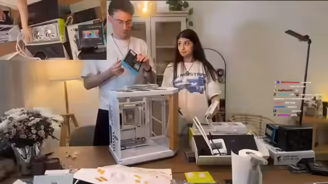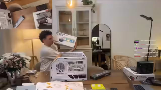 00:14:27Der Streamer erklärt den Hintergrund des PC-Baus: Sein Bruder sollte einen ähnlichen PC wie den aktuellen erhalten, entschied sich aber, stattdessen einen neuen selbst zusammenzustellen. Durch Einflüsse von TikTok-Accounts entschied er sich für einen PC mit leuchtenden Kabeln und einem zusätzlichen Monitor im Gehäuse. Alle Komponenten bis auf die Grafikkarte und das Netzteil sind vorhanden.