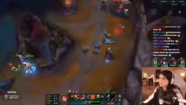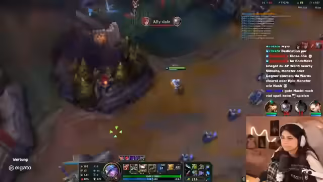 03:05:09Der Streamer coacht Emi weiterhin während ihres League-of-Legends-Spiels. Er gibt ihr Ratschläge zur Positionierung, zum Timing von Fähigkeiten und zur Orientierung auf der Karte. Er betont, dass sie lernen muss, den Abstand zu Gegnern einzuschätzen und sich nicht unnötig zu gefährden, während er selbst sein Spiel als weniger kompetent beschreibt und den Spaß im Vordergrund sieht.