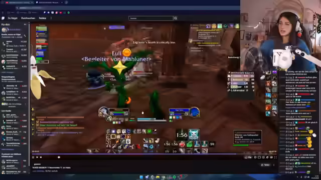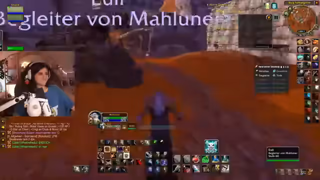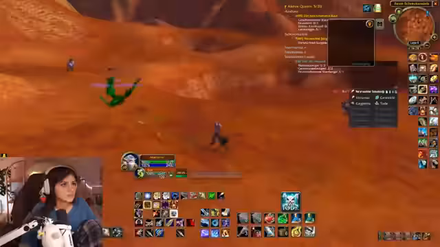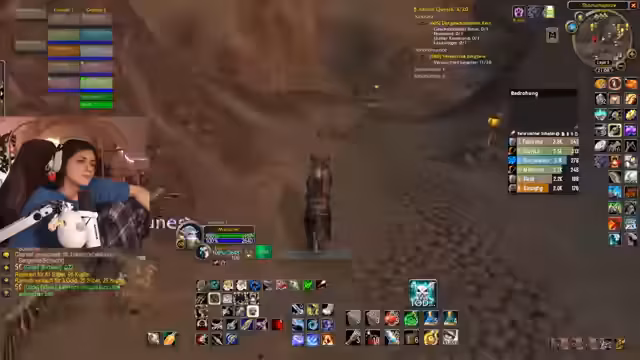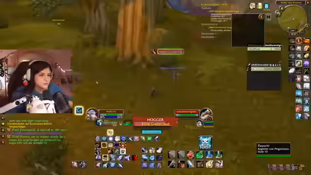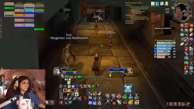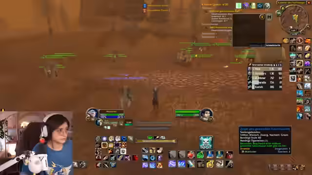 01:15:10Es findet eine Tour durch ein PVP-Gebiet statt, bei Ginny, die ihre Charakter nicht traut, massive Angst und Unwissenheit hinsichtlich der sicheren Zonen und PvP-Flagging-Regeln zeigt. Die Gruppe plant einen 'Hundemeister-Run' in Blackrock Depths. Die Gruppenzusammenstellung wird diskutiert, Ginny will als DPS mitkommen, wird aber darauf hingewiesen, dass sie nur an den Rolls teilnehmen kann, wenn sie selbst die benötigten Items braucht, da die Gruppe nach jedem Boss-Reset neu startet.