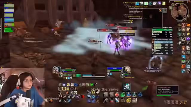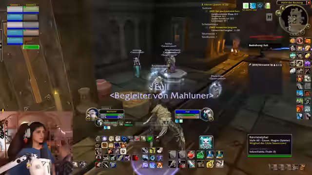 07:24:31Der Raid beginnt. Die Streamerin erklärt die Taktik für den ersten Raum in Stratholme. Alle sollen in den mittleren Raum gehen, um nicht in andere Räume geworfen zu werden. Matteo muss mittig stehen, um Heals zu erhalten. Die ersten Mobs werden gezogen, und es kommt zu einem Dispute, da jemand offen das Mikrofon nutzte. Die Streamerin stellt klar, dass im Discord kein Open Mic sein soll und nur einer sprechen darf.