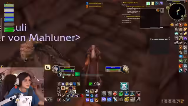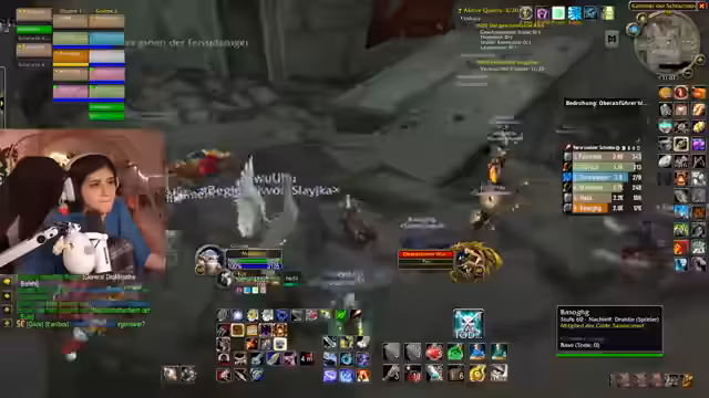 06:58:10Nach dem Bosskampf wird die Quest-Übergabe besprochen. Spieler ohne Brief können looten, während Matteo und Baso den Boss noch einmal für ihre Quest töten müssen. Gleichzeitig stellt sich das Problem, dass niemand einen Schlüssel für den nächsten Dungeon, BRD, hat. Man beschließt, gezielt nach Spielern mit Schlüsseln wie Falkan und Pemba zu suchen, da man ohne diesen nicht weiterkommt.