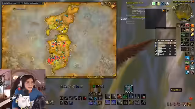 07:03:18Die Gruppe plant den nächsten Schritt: Flug in die Brennende Steppe, um eine Quest fortzusetzen. Gleichzeitig werden organisatorische Änderungen für den anstehenden Raid 2 bekannt gegeben. Die Kommunikation wird von Discord auf Teamspeak umgestellt, da dies als viel besser empfunden wird. Die Suche nach einem Schlüsselträger für BRD wird fortgesetzt, um den Vorbereitungen für die Zukunft zügig voranzukommen.