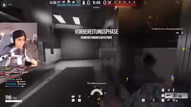 00:05:11Das Showmatch beginnt und der Streamer und sein Team starten ihre Offensive. Es kommt zu mehreren Todesfällen, was zu frustrierten Ausrufen führt. Im weiteren Verlauf gelingt es dem Team, eine Bombe zu platzieren und die Verteidigung erfolgreich zu gestalten, was zu einem Sieg und einer Erleichterung führt, nachdem zuvor mehrere Runden verloren wurden.