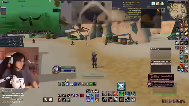 06:16:13Der Stream konzentrierte sich intensiv auf den zeitintensiven Farm von Teufelsaurierledern in Silithus. Es wurde der mühevolle Prozess beschrieben, die Dinosaurier zu finden, zu töten und anschließend das Leder zu looten. Ein Hauptproblem waren feindliche Spieler in der Gegend, die ebenfalls jagten, was den Prozess zusätzlich erschwerte. Die Gruppe diskutierte über die Notwendigkeit von sieben Spielern für den Raid, wobei auch Backup-Planer erwogen wurden. Es kam zu einer unglücklichen Situation, bei der ein fremder Jäger einen Elite-Dino tötete, das Leder aber nicht loote und verschwand, was als Verschwendung von wertvollen Ressourcen angesehen wurde.