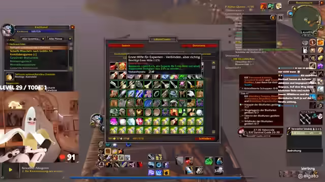 03:52:20Der Stream konzentriert sich auf das Gameplay von World of Warcraft Classic. Die Sprecher beschreiben das gemeinsame Leveln ihrer Charaktere, die Erkundung von Gebieten wie dem Schlingendornthal, das Sammeln von Questgegenständen und das Töten von Mobs. Es werden auch Berufsfähigkeiten wie Kochen und Erste Aid angesprochen und die Notwendigkeit von spezifischem Rezepten und Ressourcen betont. Die Strategie für die anstehenden Instanzen wird vorbereitet und die Ausstattung der Charaktere für Heiler- und Damage-Rollen diskutiert.