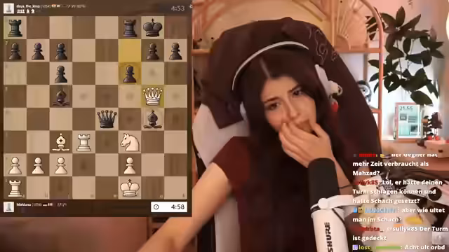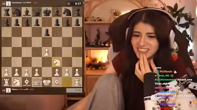 04:17:23Der Streamer stellt sich für neue Zuschauer vor, die möglicherweise aufgrund des Raids hereinkamen, und beschreibt seinen Schachstil als 'sehr amateurhaft' und verwirrend, was er selbst als Strategie bezeichnet. Er bittet die Community, ihm keine Tipps zu geben, um Fairplay zu wahren, und drückt aus, dass er gegen die 'Primus' spielt. Der erste Schach-Partie endet als 'epische Niederlage' für den Streamer, was er jedoch mit Humor nimmt. Die Unterhaltung über die Schachstrategie wird fortgesetzt, und es wird ein 'Rematch' zwischen zwei Community-Mitgliedern kommentiert.