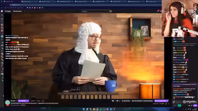 07:13:00Der Stream eröffnet als Parodie eines Gerichtsverfahrens gegen einen 'angeklagten' Spieler. Als Vorsitzender agiert der 'Herr Staatsdiener', der Jura-Semester studiert haben soll. Die Verteidigung wird von 'Frau Tonin' und 'Herr Boss' übernommen, wobei letzterer zunächst nicht anwesend ist. Die Anklage bezieht sich auf ein angebliches Vergehen in einem World of Warcraft-Dungeon namens Zul-Farag, wobei die genauen Vorwürfe zunächst unklar bleiben. Der Prozess soll das Verhalten des Angeklagten während eines kritischen Bosskampfes beleuchten.