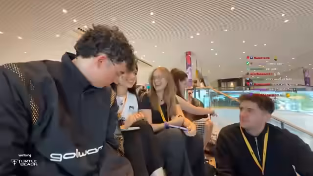 01:30:17Bei einem Stand wird ein Influencer mit Instagram-Kleidung erkannt, der den Streamerinnen Ringe schenkt. Später werden weitere bekannte Creator gesichtet, darunter Lenny, ein Geogaster-Profi, und Anna Kremling. Die Begegnungen sorgen für Aufregung und die Streamerinnen äußern ihre Bewunderung für die Fähigkeiten und den Erfolg anderer Creator, insbesondere im Bereich des Schachspiels.