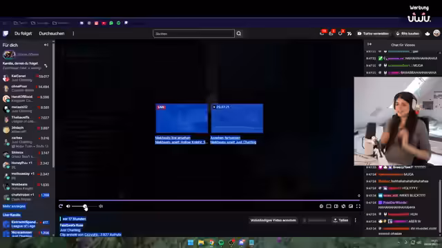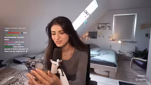 00:13:59Es wird angekündigt, dass Valorant erst Ende der Woche wieder gespielt wird, da das Internet am aktuellen Aufenthaltsort nicht optimal ist. Hauptproblem ist der Paketverlust, der das Spielerlebnis beeinträchtigt. Die Streamerin spricht über ihre Vorliebe für Zero-Getränke und empfiehlt als gesunde Alternative Wasser. Ein Zuschauer berichtet, dass er wegen ihr mit dem Streamen angefangen hat, woraufhin die Streamerin ihm viel Erfolg und Spaß wünscht. Es wird über die Vorlieben von Lukas diskutiert und die Frage aufgeworfen, warum es keinen Pfirsich-Eistee gibt. Die Streamerin erwähnt, dass Jinx, die Katze, neben ihr geschlafen hat und Lukas ein Foto davon gemacht hat. Es wird der aktuelle Aufenthaltsort im Elternhaus von Lukas erklärt, wo sie auf den Familienkater aufpassen. Ab morgen geht es wieder nach Hause. Die Streamerin interagiert mit dem Chat und beantwortet Fragen, unter anderem ob sie mit Lukas zusammenliegt, was sie bejaht.