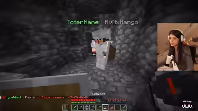 04:22:08Diskussion über die Entstehung des Teamnamens 'Tote Namen', der aus einer Rebellion gegen den Vorschlag 'Malango' entstand. Die Entscheidung für den schlechten Wortwitz wird humorvoll kommentiert. Erkundung einer Höhle mit Lava und Redstone-Vorkommen. Es werden Geräusche von Gänsen wahrgenommen. Ein Eisenhelm wird angeboten, aber abgelehnt, da die Notwendigkeit für Kämpfe als gering eingeschätzt wird. Mehrere Skelette sind zu hören, was zur Vorsicht mahnt. Der gefundene Redstone wird als sehr ergiebig eingeschätzt. Es wird überlegt, ob die aktuelle Richtung die richtige ist, während Geräusche von Gegnern zu hören sind, ohne diese zu sehen. Gravel fällt auf den Kopf und ein ekliger Eingang wird entdeckt, während man sich im Untergrund versteckt, um anderen Spielern aus dem Weg zu gehen. Die Angst vor der herannahenden Border wird thematisiert.