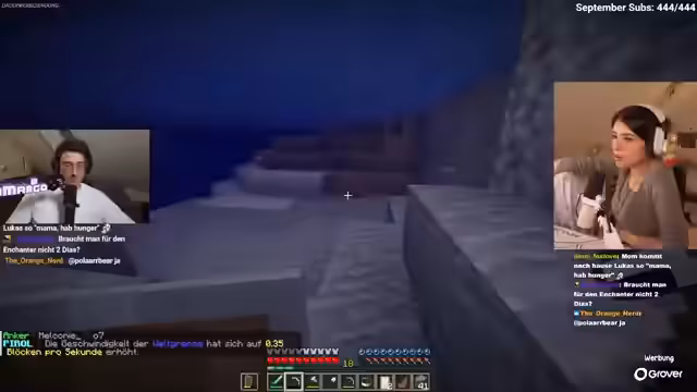 05:08:50Der Clip vom Tod wird angesehen. Es wird festgestellt, dass man das Loch hätte zubauen müssen. Es wird festgestellt, dass man auf das Loch geguckt hat und sogar an der Kante stand. Es wird festgestellt, dass man keine Lava gehört hat. Es wird festgestellt, dass man das Loch so weit zugebaut hat, dass es nur noch aussah wie ein kleiner Ritzel. Es wird festgestellt, dass man trotzdem nicht einmal reingeguckt hat. Es wird festgestellt, dass man das Loch hätte zubauen sollen. Es wird festgestellt, dass man sich hätte konzentrieren sollen. Feister ist schuld! Es wird beschlossen, Feister auf der Couch schlafen zu lassen. Es wird eine Sprachnachricht an Feister geschickt. Es wird festgestellt, dass Feister keine Couch hat. Es wird überlegt, was man jetzt machen soll. Es wird festgestellt, dass es ein Jump'n'Run ist. Es wird festgestellt, dass man jetzt freestyle muss. Es wird festgestellt, dass man genug gecaved hat. Es wird festgestellt, dass man jetzt ein Mann ist. Ein Mann hätte das Loch zugebaut. Es wird festgestellt, dass man am Ende selbst reinfällt. Es wird überlegt, was das Play jetzt ist. Es wird überlegt, sich was im Kirschblütenbiom zu bauen. Es wird überlegt, Wölfe zu finden.
