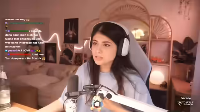 04:40:27Der Stream beginnt mit einer launischen Diskussion über das Spielgeschehen. Die Streamerin berichtet, dass sie vom Werwolf in die Burg gelockt wurde und dort auf Jen, Sterzig und Simon traf. Simon wird dabei als Verfolger beschrieben. Im Safe Room trifft sie auf Kaddi. Die Atmosphäre ist geprägt von Verdächtigungen und gegenseitigem Beobachten. Auch eine Toilettenpause wird thematisiert, bevor die Konversation über Simon fortgesetzt wird, der in der Bibliothek als bedrohlich beschrieben wird.