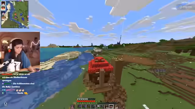 01:04:27Die Streamerin sortiert ihr Inventar und bereitet sich auf den Bau vor, indem sie sich für eine Blockpalette aus Pilzen und Sandstein entscheidet. Sie muss Pilze abbauen, was sich als Herausforderung erweist, da Pilze nur unter bestimmten Lichtverhältnissen wachsen. Sie begibt sich auf die Suche nach einem Pilzbiom, um die benötigten Materialien zu sammeln. Dabei stößt sie auf schwebende Bäume, die sie humorvoll kritisiert. Während des Abbaus der Pilze kommt es zu einer Diskussion im Chat über das effizienteste Werkzeug (Axt vs. Hacke), wobei sie sich letztendlich für die Axt entscheidet, um den Prozess zu beschleunigen. Sie sammelt ausreichend Pilzblöcke und Sandstein, um die Plattformen des Baumhauses mit dem Stamm zu verbinden, was sie als kreative Herausforderung ansieht, die sie mit einem gewissen Maß an Angst vor Creepern angeht.