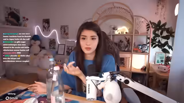00:14:24Nach einer kurzen Pause unterhält sich die Streamerin über Wasser trinkgewohnheiten - die Vorliebe für stilles oder sprudel Wasser. Sie äußert sich über ihre Erfahrungen mit verschiedenen Wassermarken und Leitungswasser in Berlin, das sie als katastrophal und kalkhaltig beschreibt. Sie erklärt die Installation eines Wasserhahns mit Kalkfilter und vergleicht den Geschmack vor und nach der Filterung. Schließlich wechselt sie das Thema zu ihren Hautproblemen, insbesondere Rückenakne, die sie sehr belastet. Sie berichtet von möglichen Ursachen und den Auswirkungen auf ihren Alltag.