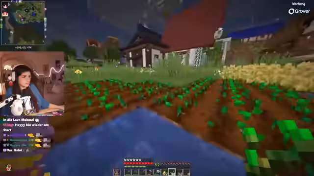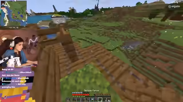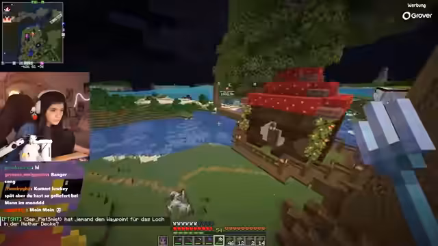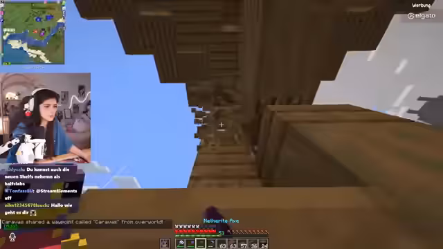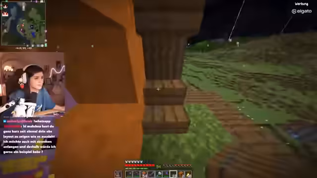 06:14:24Nachdem der Streamer seinen Standort im Nether verlassen hat, kommt es zu einem Missgeschick in der Hühnerfarm: 50 Hühner entweichen, weil ein Block entfernt wurde, um die Farbe zu ändern. Dies wird als 'wirklich krass' und 'Problem' beschrieben, da die Hühner nun wieder hochgezüchtet werden müssen. Der Streamer bedankt sich für die Unterstützung beim Wiederaufbau der Farm. Anschließend werden die beiden fertiggestellten Häuser präsentiert, die im Vergleich zu einer Video-Vorlage als 'viel cooler' empfunden werden. Das Baumhaus-Projekt wird als 'Mammutsprojekt' bezeichnet, und es wird die Idee einer 'Elytra-Lounge' im Baum geäußert. Die Baumkrone erfordert noch viel Arbeit und wird heute nicht mehr fertiggestellt.
